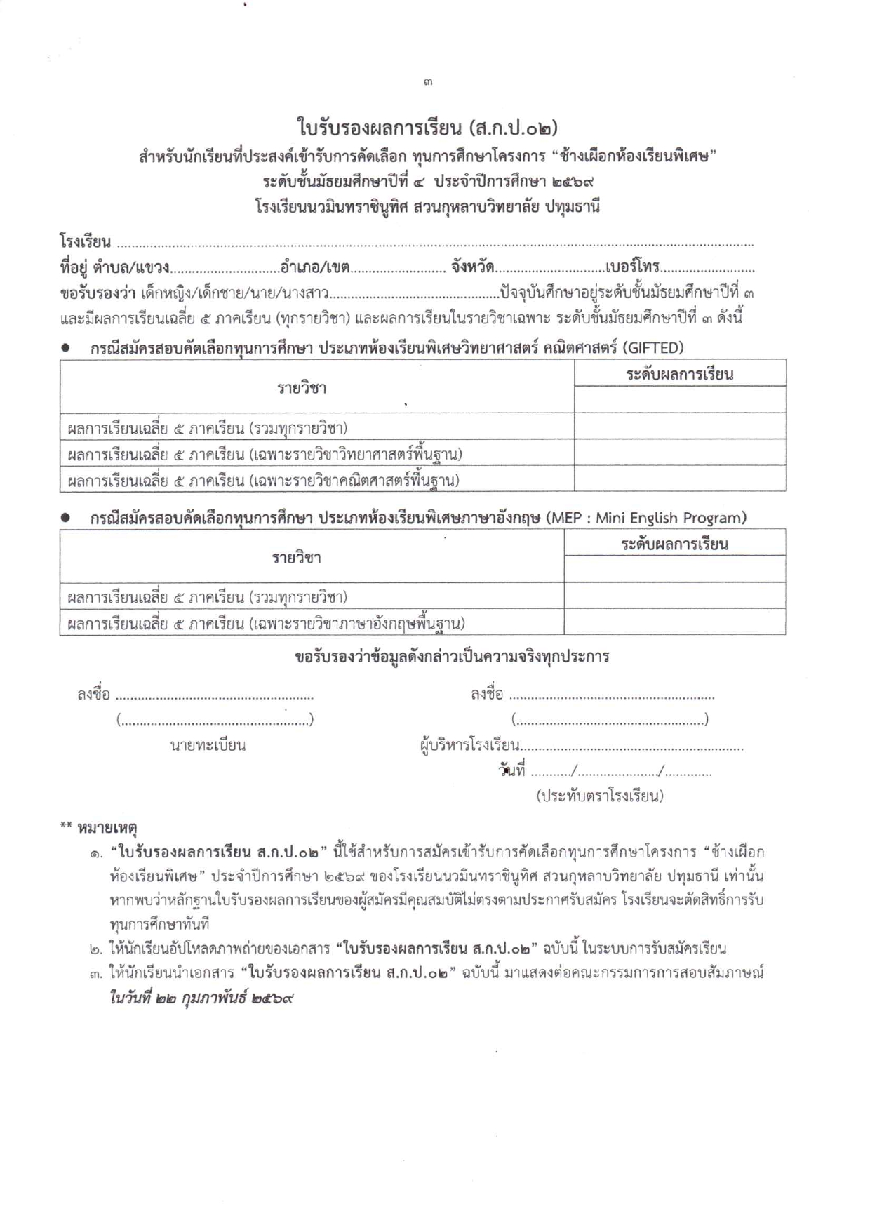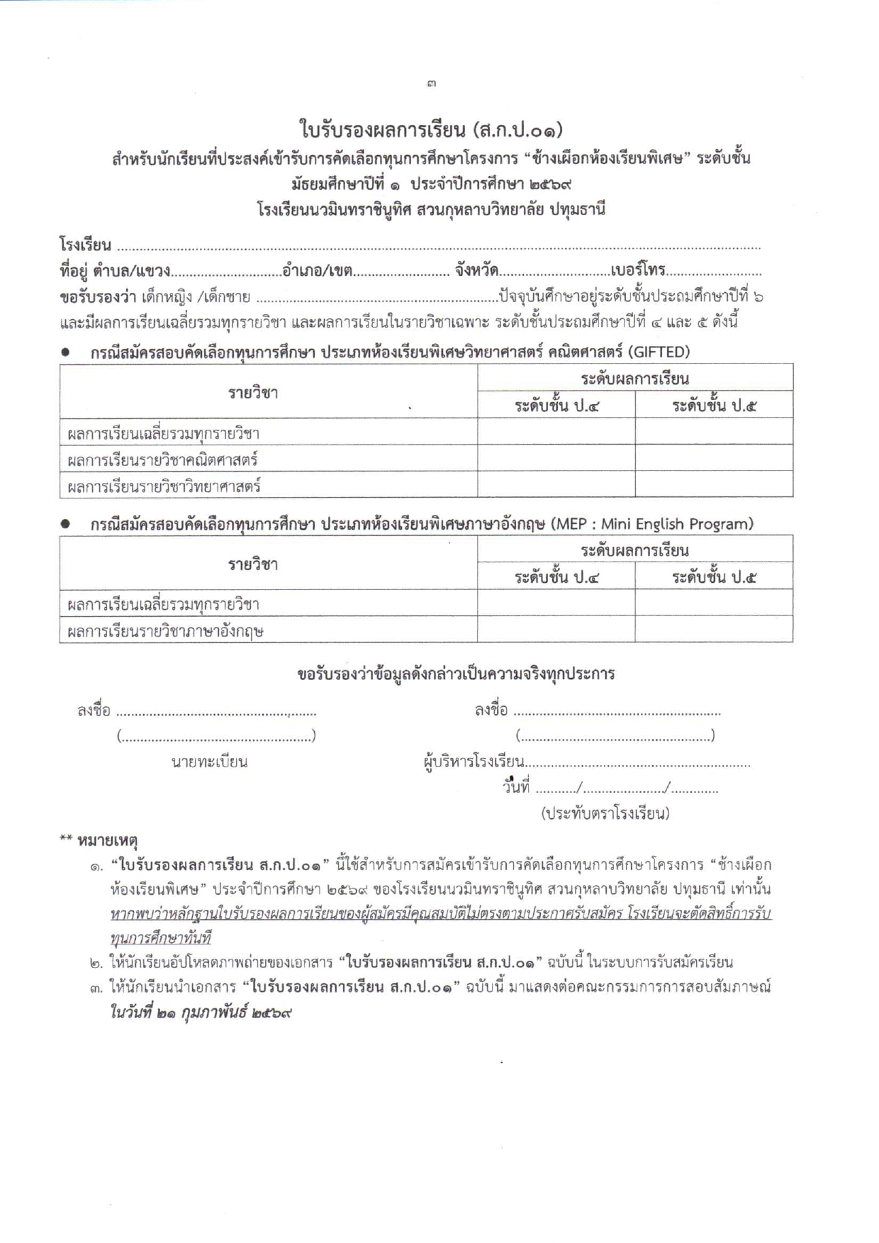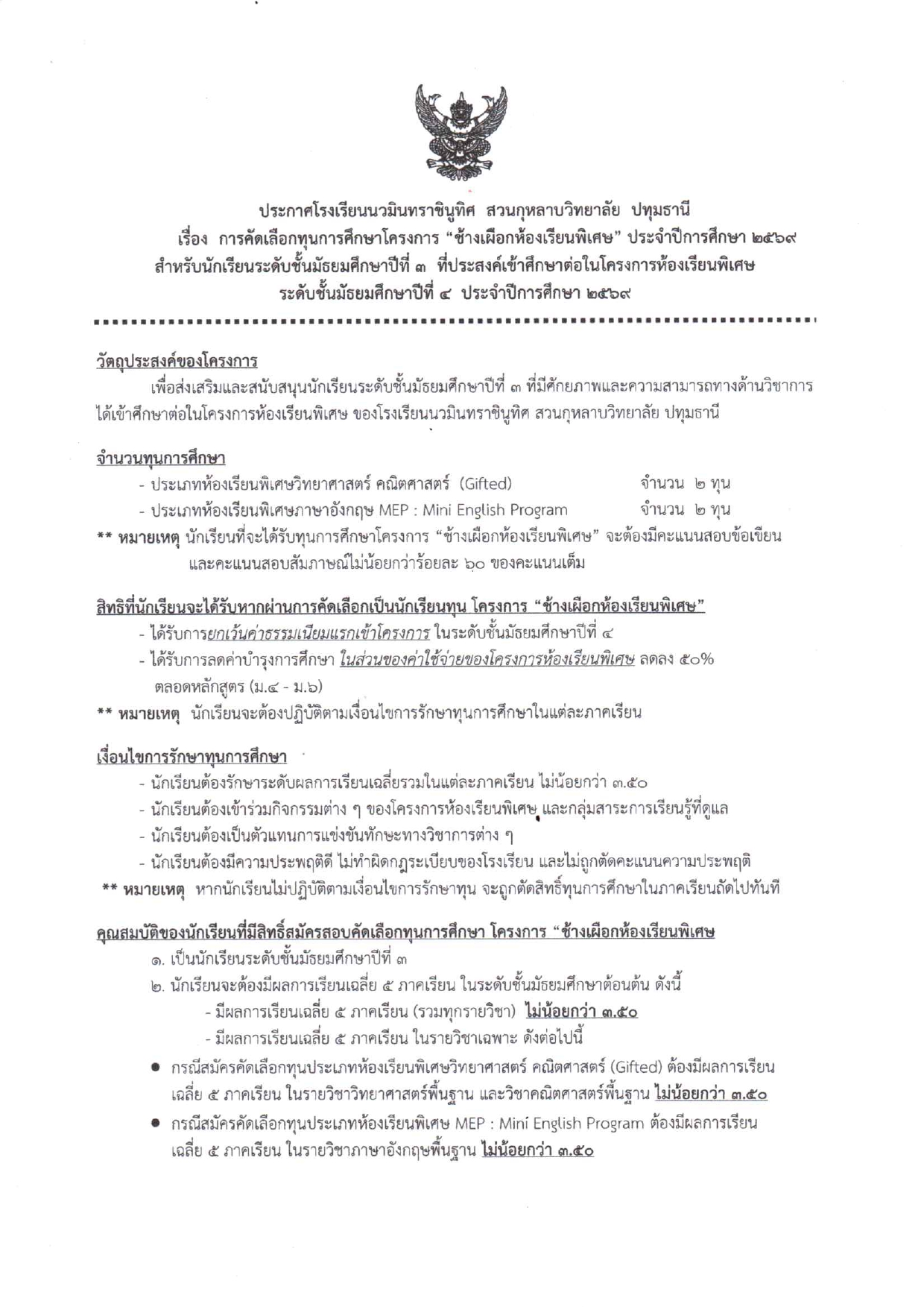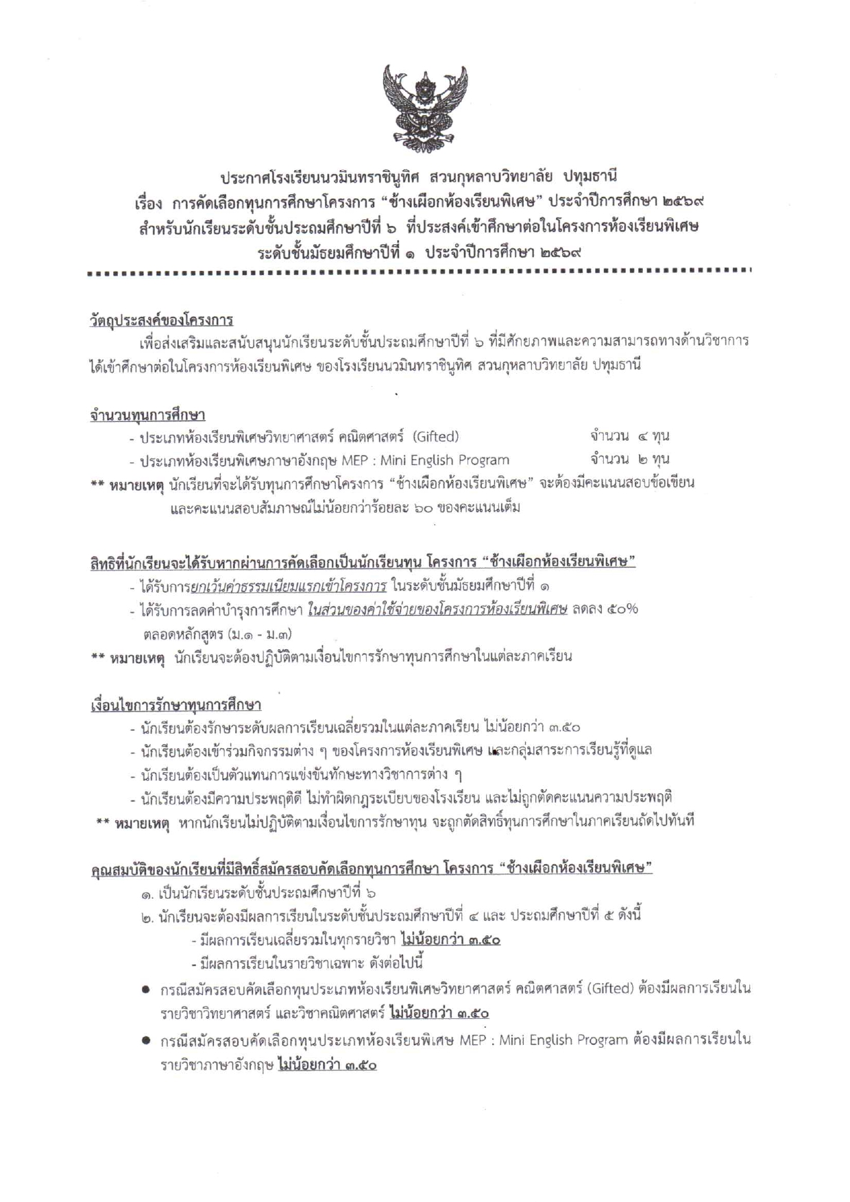ระบบรับสมัครนักเรียน ปีการศึกษา 2569
